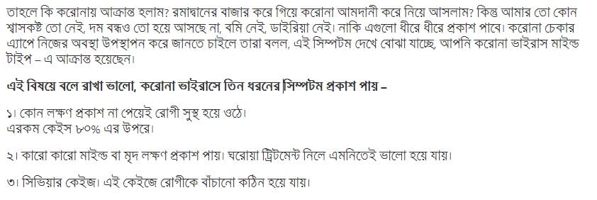 আল্লাহর রহমত! একটুও বাড়িয়ে বলছি না। এভাবেই আমি দুইদিনে পুরোদমে সুস্থ হয়েছি। মহান আল্লাহ আমাকে সুস্থ করে দিয়েছেন।এর বাইরে গত পরশু আর গতকাল ইফাতারির পর দুইটা করে কমলালেবু খেয়েছিলাম। আর সাহরীতে একগ্লাস গরম পানি, সাতটি আজওয়া খেজুর আর রাতে ঘুমাবার আগে ম্যাগি স্যুপ খেয়েছি, যে গুলো আমি আগে থেকেই খেতাম।
