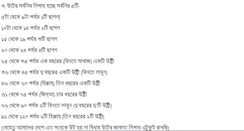 রাসুল সাল্লাল্লাহু আলাইহি ওয়া সাল্লাম বলেছেন, ‘পাঁচ আওয়াকের কমে জাকাত নেই। পাঁচটি উটের কমে জাকাত নেই। পাঁচ ওয়াসাকের কমে জাকাত ফরজ নেই।’ (বুখারি ও মুসলিম)।